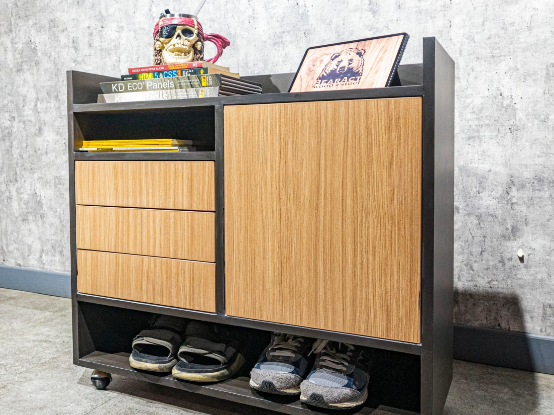 Mewujudkan kebutuhan interior Anda dengan kombinasi kayu dan baja berkualitas, diproduksi dengan presisi dan standar tinggi.